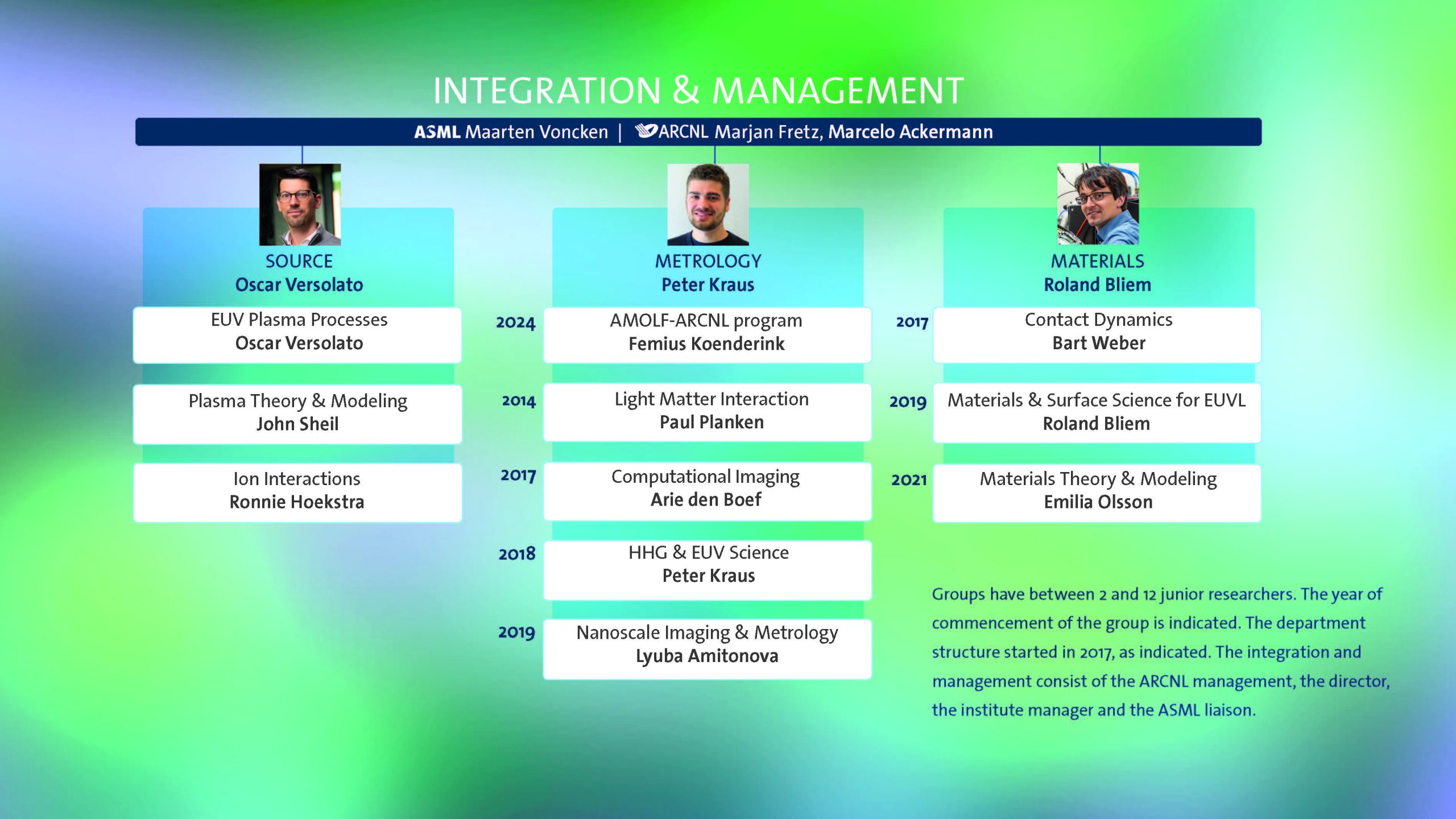 Within ARCNL’s research program, three thematic clusters reflect the direct alignment with the Research and the Development & Engineering departments at ASML